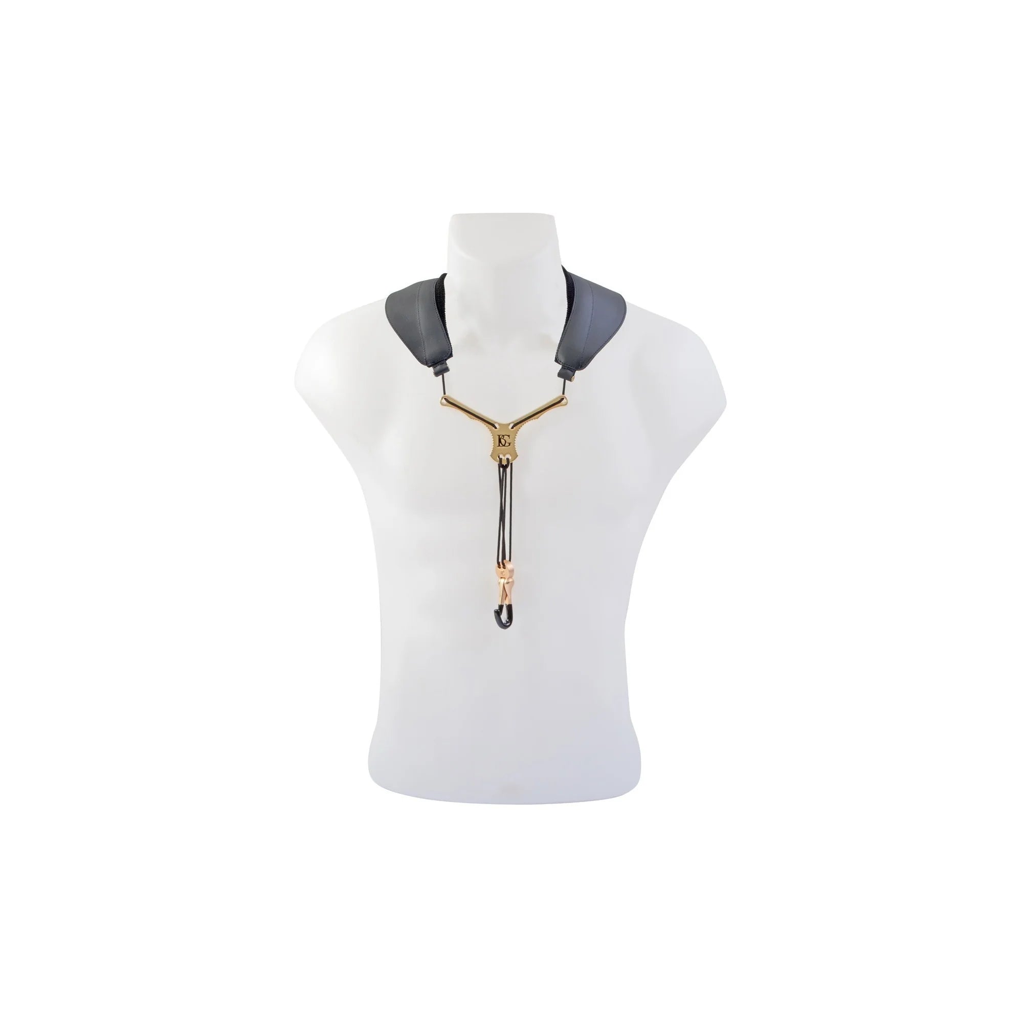 Golden metal extender to release the pressure around the neck, with a non-slip grip for fast, reliable adjustment of the non-elastic string.